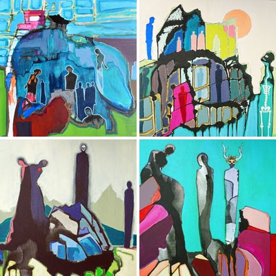 Dominated by profound shades of blue that evoke the depths of an otherworldly ocean, the canvas dances with contrasting splashes of red, green, pink, and black. These colors rise and fall within the piece like fragments of dreams scattered across a twilight sky. The composition's core reveals silhouetted figures that drift and intermingle with the unseen currents of this imaginary urban realm. Meticulously outlined in white and black, these spectral forms seem to navigate a labyrinth of abstract, linear constructs and geometric configurations, suggesting a fleeting, elusive reality. The vivid and fervent brush strokes move with a life of their own, breathing movement and dimension into the fabric of the painting. As the viewer delves deeper into this complex tapestry, they are greeted by an atmosphere of dynamic energy and thoughtful resonance. The urban landscape, though abstract, is alive with whispered stories and hidden meanings, each stroke of the brush a step into a mystical journey. The harmony of shapes and colors beckons, inviting an engagement that transcends mere observation to explore the layered realms of the mind and soul. This is a place where the viewer's interpretations become an integral part of the artwork's unfolding narrative, making every encounter a unique and personal voyage.