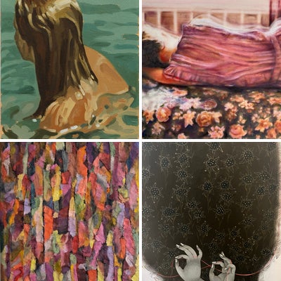 Lapres’s work exists in-between painting and writing. She combines a studio practice with a writing practice, making paintings to illustrate her writing, and writing to narrativize her paintings. The effect is a looping translation. Confessional and voyeuristic at once, fantasy, desire, and shame are central to her work.