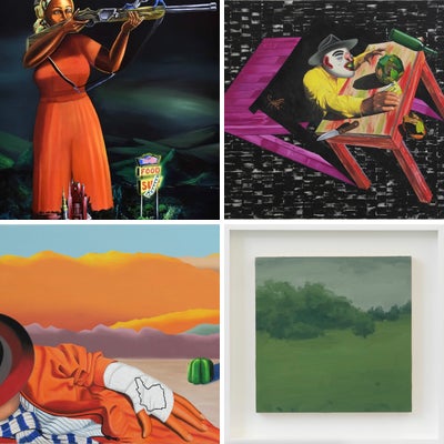 Within the thick foliage of the Amazon, coca leaves (acullico) pour forth from the thousands of shrubs that turn green, ocher, and yellow owing to the light penetrating the canopies. There, in the immensity of the shadows, powerful roots emerge—plants that, when ingested, cause alterations in states of consciousness, transmuting the perception of individuality, of being, and of the environment, reminding us that both the body’s inside and its outside are perceived and imagined at the same time. In this pictorial ensemble, Miguel Ángel Ríos presents a unique vision of himself via self-portraits that explore a fluid and constantly transforming “I,” which with each layer of paint ends up becoming unrecognizable, blurring the distinction between reality and imagination. In this sense, visual elements such as the face, the hat, and the scarf are configured in an amalgam of artistic styles, without any one element losing its own individual style within a composition that seeks to question the conventions of representation in a world governed by social media, and in which identity is characterized by being fixed and immutable. Apart from the light and shadows in Ríos’s visual landscapes, a range of colors is revealed that goes from dark to pastel tones. Fauna is present through lurking postures, operating as reminders, as with the ant that—with a subtle wink—recalls Operación Hormiga (Operation Ant), which is carried out by hand in order to pass coca leaves from one territory to another in southern Latin America, or with the figure of the scorpion that symbolizes a level of the unconscious, full of imagination and uncertainty. \- Mariana Camargo , Curatorial Coordinator Acrylic and oil on canvas