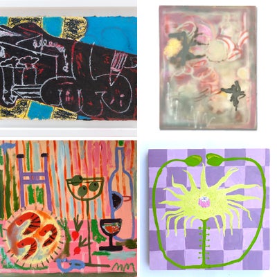 Huey Ruckus attended Savannah College of Art & Design, before dropping out to pursue a career in music. Perhaps better known by his stage name Rejjie Snow, Ruckus is an award winning rapper, songwriter & producer. Ruckus’ paintings document his experiences of everyday life, mixed with his subconscious and conscious thoughts. A seductive mix of sprayed lines combines with scrawled marks and feathered brushstrokes to build powerful images that explore colour, gesture & surface whilst hinting at cartoon-esque visual languages of the 90s. Ruckus has previously shown with Chilli Art Projects, London & Sheriff Gallery, Paris. He has published books such as Ugly Duckling with Motto Berlin.