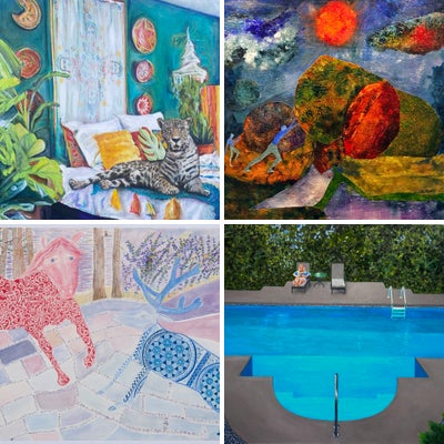 Experimentation, freedom, and humor. A work born from an expectation-free and unpredictable process where different techniques intertwine to create parallel stories among disquieting beings in fantastical landscapes. It seeks the gaze of the observer, challenging them to interact and craft their own visual narrative. A vitalistic and unsettling endeavor, infused with vibrant colors and seemingly abstract forms laden with symbolism.