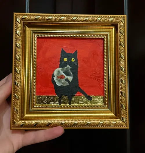 Nadiia Boichenko was born in 1993 in a small town in Ukraine. A self-taught artist, she has been passionate about drawing since early childhood and eventually turned this passion into a way of life. Her work is a subtle blend of naive humor, vintage aesthetics, and a deep affection for animals. Inspired by everyday moments, cozy atmospheres, and easily overlooked details, Nadiia creates paintings that are rich in character and emotion. Miniature animal portraits hold a special place in her art—sometimes ironic, and often infused with human-like expressions and familiar narratives. Each piece is meticulously hand-painted in acrylic or oil on canvas, carrying the charm and authenticity of true handmade art. She currently lives and works in the USA, continuing to grow creatively and share her vision with people around the world.