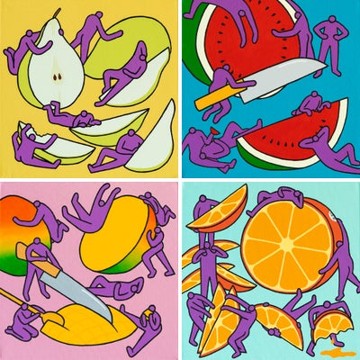 Kelcy Timmons Chan (they/them) is a Cantonese Canadian American queer artist who works as a multidisciplinary contemporary pop artist and mural painter. In their work they explore community, duality and belonging through their lens as a biracial, gender-fluid, immigrant. In their practice, Kelcy considers how food allows us to connect with our history and identities. They explore how our relationships help define what home feels like and how it gives us space to belong to. Using food, little purple people and whimsical architecture, Kelcy promotes and supports local businesses, family-run restaurants and queer community spaces, by considering how food and people shape community and culture.