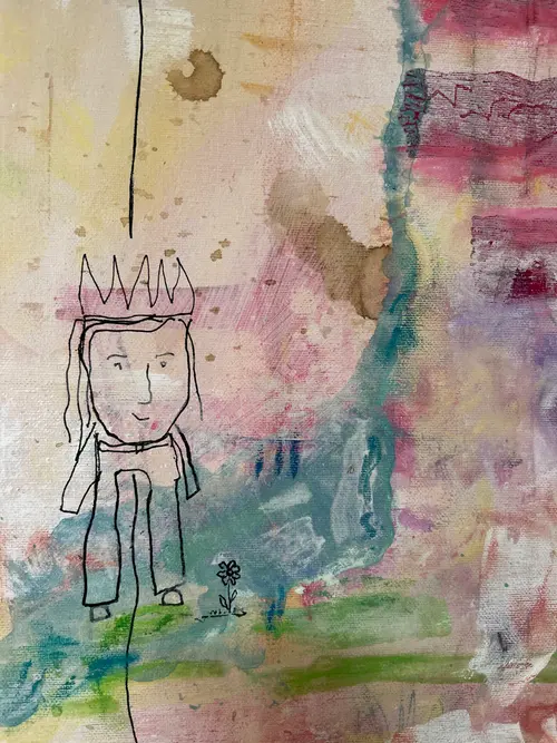 Part of my series exploring childhood. Inspired by the vision of a simple flower, the Asphodel, which somehow transported me straight back to 5 years old standing on the fields near the sea. This painting speaks of the utter freedom and belief of youth.