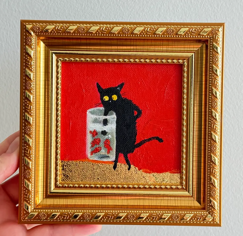 Nadiia Boichenko was born in 1993 in a small town in Ukraine. A self-taught artist, she has been passionate about drawing since early childhood and eventually turned this passion into a way of life. Her work is a subtle blend of naive humor, vintage aesthetics, and a deep affection for animals. Inspired by everyday moments, cozy atmospheres, and easily overlooked details, Nadiia creates paintings that are rich in character and emotion. Miniature animal portraits hold a special place in her art—sometimes ironic, and often infused with human-like expressions and familiar narratives. Each piece is meticulously hand-painted in acrylic or oil on canvas, carrying the charm and authenticity of true handmade art. She currently lives and works in the USA, continuing to grow creatively and share her vision with people around the world.