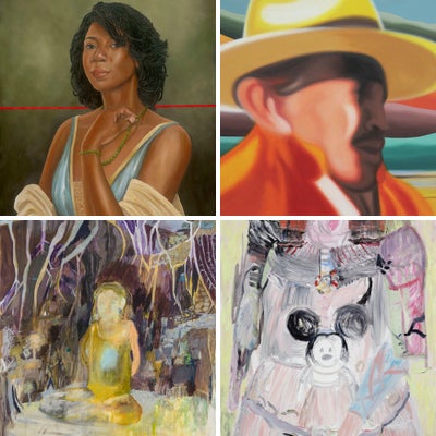 Travelling daily between the US and Mexico, Cervantes’ work is characterised by an interest in power relations between race, class, gender and even species. Cervantes uses painterly devises to create works of semi-narrative that address age-old dynamics of dominance and submission. Thus, her paintings adopt a strongly Mexican cultural discourse, implicated within wider narratives of colonial and post-colonial representation.