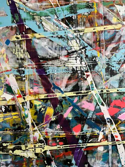 Matthew Webber’s experimental abstract paintings are created over a period of weeks, months, even years, with the artist systematically applying paint until a dense slab of layered pigment and texture is formed, ready for his process of ‘unpainting’ to begin. Gradually, as this painted surface is removed, the artist slowly uncovers an intricate network of colour and contours buried within. This is painting as archaeology: the story of each piece is minutely revealed - complex and unique - emerging like marble from a hand-painted block. Inspired by the landscape – particularly the liminal spaces where nature and humanity collide – Webber’s paintings attempt to capture the increasingly unpredictable processes and events which shape the natural world. Living and working in East London for the past 25 years, Webber has exhibited widely in the UK. His work is held in numerous private collections.