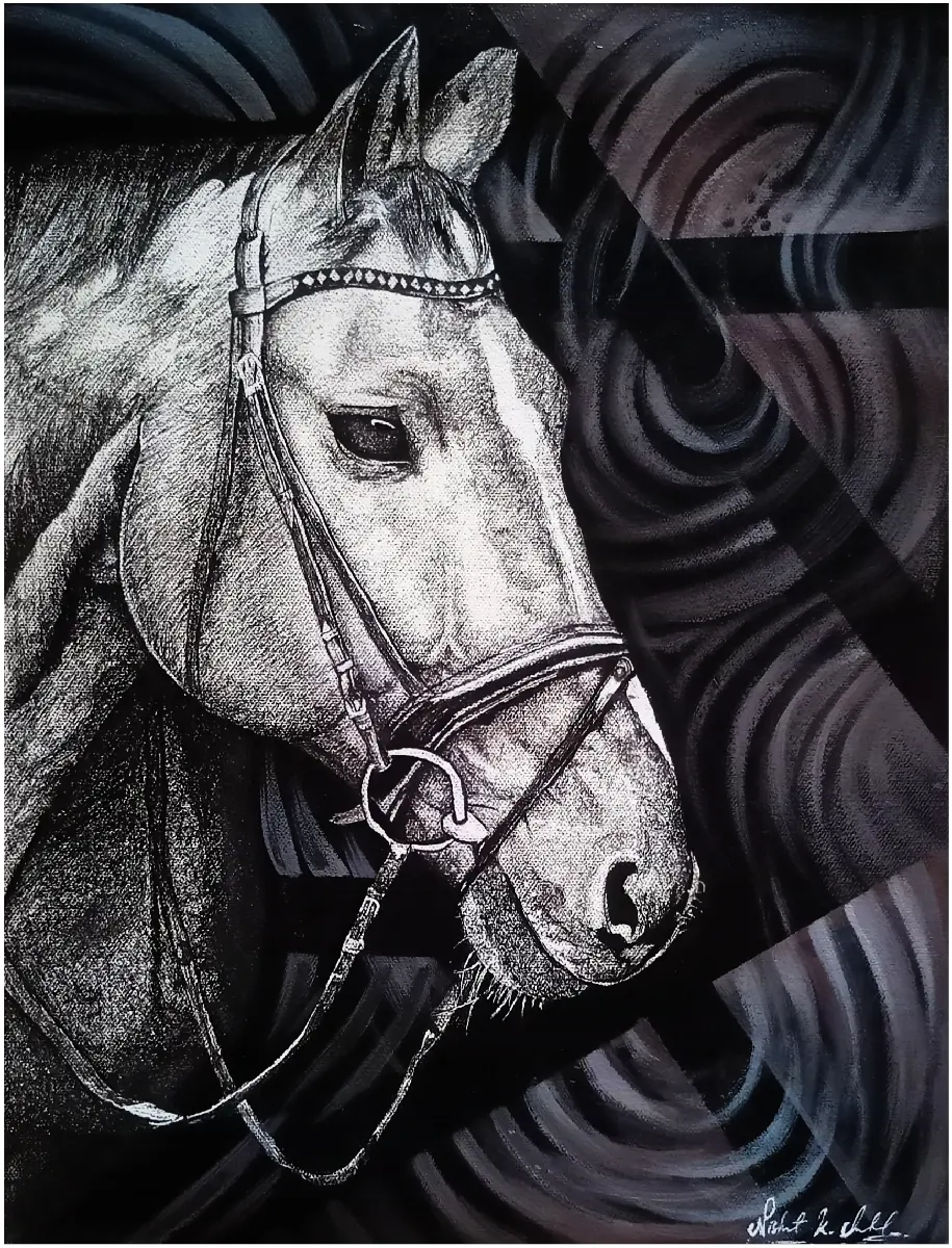 "Equine Elegance - The Spirit of Strength" is more than just a portrait-it's a moment frozen in time. This piece captures the quiet majesty of a horse, a symbol of freedom, loyalty, and inner strength. Created using a rare fusion of fine ink detailing and expressive acrylic layering, the artwork reveals the soul of the animal through its poised stance and calm, intelligent eyes. Each line was drawn with intent, every stroke painted with emotion-reflecting not only the outer beauty but the inner spirit of this noble creature. The background, rich with swirling, almost hypnotic textures, mirrors the silent turbulence and power within-much like the strength we often hold beneath our surface. Whether you're an animal lover, an equestrian enthusiast, or an art collector seeking pieces that speak to the soul-this work was created to resonate deeply and live timelessly on your wall.