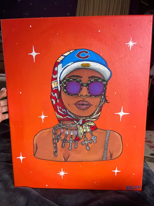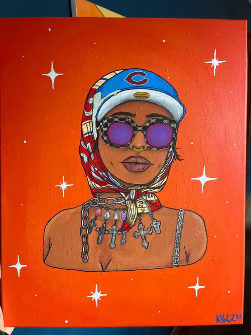Hey, I’m Kelsy! Based in Cincinnati, Ohio I am a self taught fulltime artist that’s been creating since I was a kid. I’ve created murals around the city of Cincinnati with fellow artists, I’ve had my paintings featured and displayed in museums and have lots currently on display in different shops in downtown Cincinnati as well. My work includes bold colorful and cosmic surreal style with flowers, eyeballs, and so much more!