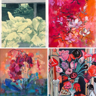 “Flowers and Books” is an original acrylic painting on paper, exploring colour theory and aesthetics.
