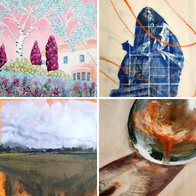I’m a contemporary artist most interested in painting and drawing otherworldly landscapes using memories, thoughts and feelings. In my practise I like to create otherworldly images of nature through different mediums like acrylic paint and oil pastels. Having started my career working solely in teaching, championing the importance of creativity in the curriculum , I am now fulfilling my own craving for creativity through my work as a visual artist. I specialised in printmaking as part of my fine art degree in Newcastle, graduating in the early 1990s. Drawing on my printmaking background- in particular cutting away at Lino- I love making intricate patterns through paints and oil pastels. I want the colours to compliment each other so I often use a limited palette -one of each of the primary colours and a black and a white. I take inspiration from fluid lines and mark making of Korean art, which is defined by its quiet inner harmony. I also love Manga and Matisse! Taking a magical realistic approach, I create ephemeral landscapes and seascapes. It’s my way of expressing my longing for lost memories and lost loved ones. I feel close to them during the act of painting. Working late into the evening I reflect back on my day. My paintings and oil pastels often tell me how I’m feeling and answer the question of what type of day it has been. Becoming engrossed in the act of creating is cathartic. I really believe in the therapeutic potential of art for both maker and viewer. I remember reading somewhere that looking at art can extend your life! I take an intuitive approach and the element of surprise makes creating art fulfilling and exciting. Feeling my way through a piece until I am happy with its visual energy fires up my brain. Titles act as the final piece of the jigsaw puzzle.