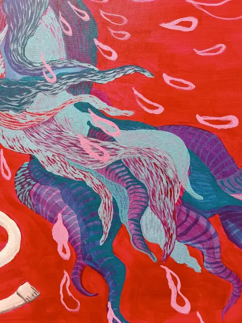 In recent years, my artistic practice has fused digital art with mixed media techniques in drawing and painting to explore the narrative connections between everyday objects and the human experience of constant, and sometimes meta, connectivity. I begin with a concept and then find the narrative that can be visually conveyed. I work with digital and pictorial materials that bridge the tangible world, creating a dialogue between the present and the past. My aim is to craft pieces that invite viewers to question the micro-narratives of contemporary life. The hybrid nature of my work reflects my experience of living in various countries, transcending cultural boundaries and evoking emotional engagement. Through the use of color, content, and form, my goal is to generate visual experiences that prompt reflection on human perception, encouraging a deeper awareness of how we connect with the world around us.