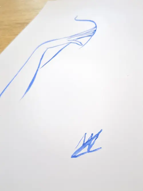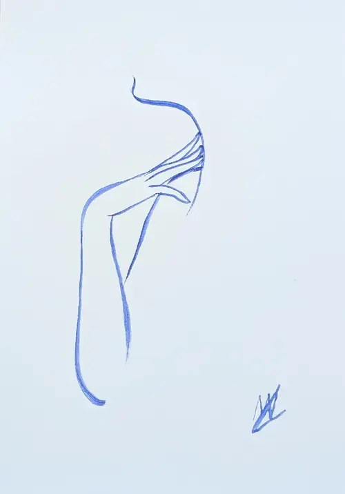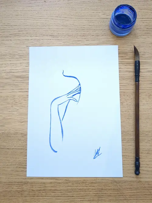 A winter night, she appears and I can smell her délicate perfume. She just put it on her skin. Made with artisanal ink of prussian blue.