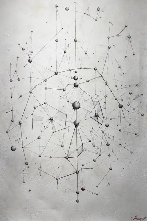 Watercolour and oil pencil on ground on canvas Exploration in depth, time, and interconnectedness as the universe looks back at you.