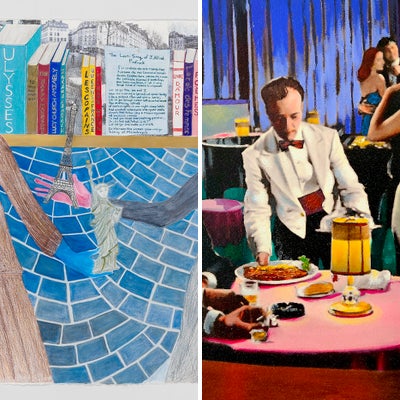 A work on paper - double portrait of sympathetic publishers, Sylvie Beach and Adrienne Monnier who owned bookstores across the street from each other in Paris. My title is the first thing they said to each other when they met.