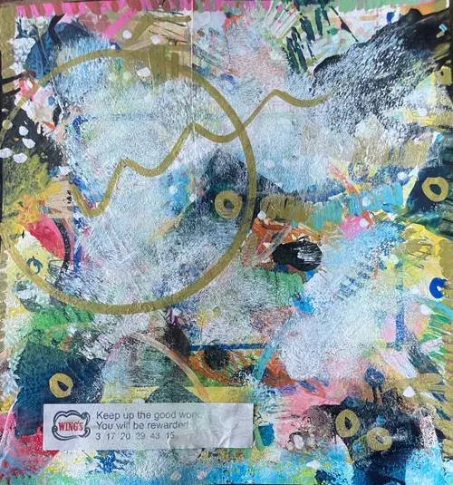 I paint using acrylics and collage elements in an attempt to create pieces that convey energy and motion.