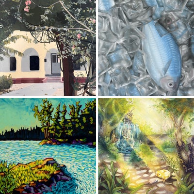 Nathalie is a French painter of Haitian origin of Haitian origin living in Paris. After studying philosophy, she attended at the Beaux-Arts in Rueil-Malmaison, she then followed by training in Visual Merchandising, which led her to work for the Chanel before bringing her own vision to life her own vision with the creation of Rosamen Bado, a responsible fashion brand. Her artist name is Nathalie Christophe Dao. Dao and Christophe being the maiden names of her maternal and paternal grandmothers and paternal grandmothers, as a way of connecting to connect with her female lineage. Nathalie's figurative painting imbued with vivid colors, imbued with Haitian spiritual heritage and influenced by the Renaissance. Through her canvases, she celebrate feminine strength and resilience, capturing bewitching gazes that invite that invite introspection. Exploring surreal elements and dreamlike and dreamlike landscapes, Nathalie opens the of the viewer's imagination, inviting them to venture beyond the confines of tangible reality.