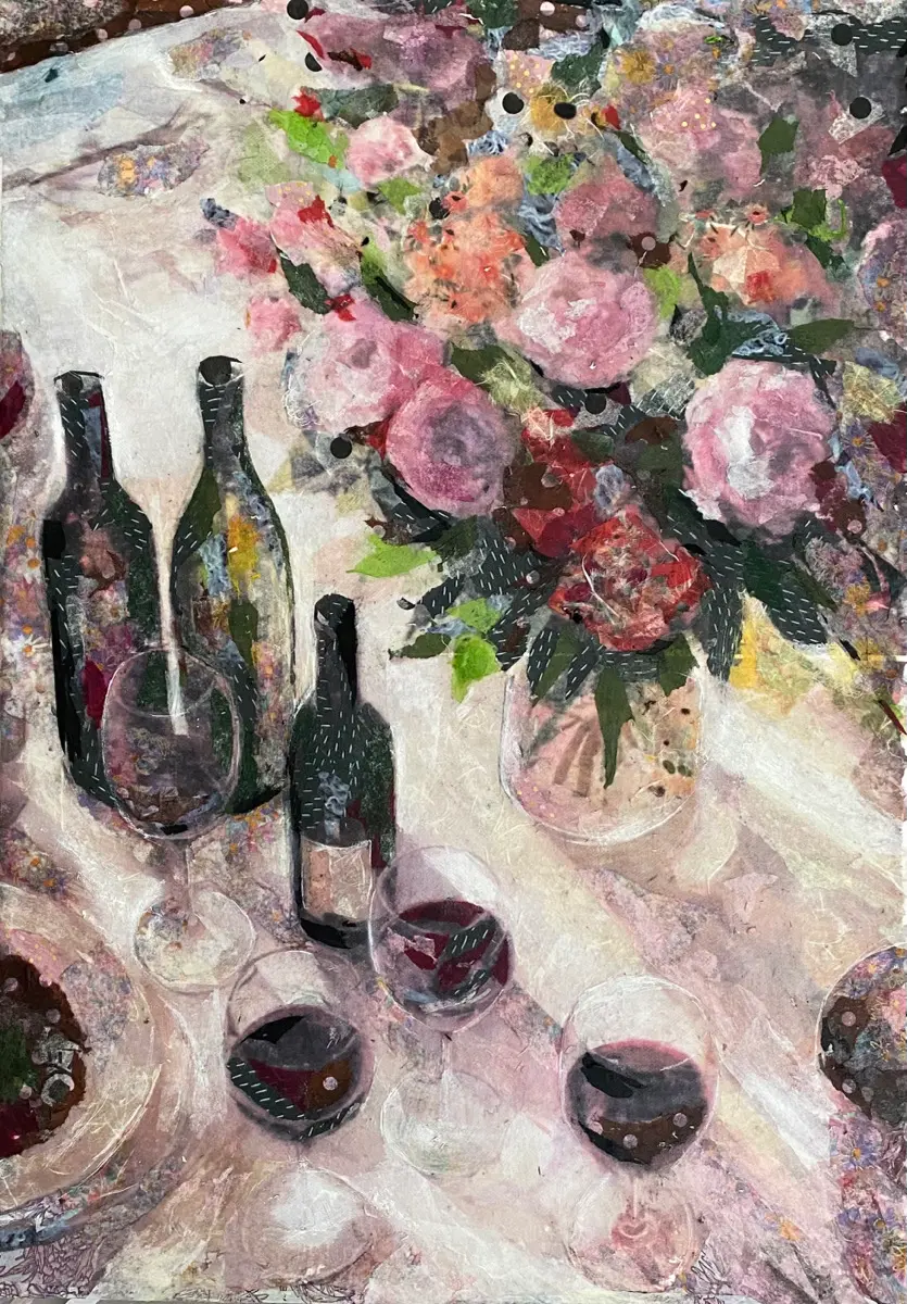 ‘La Dolce Vita’ is part of my collage series. Painted purely in paper and varnished with different levels of matte and gloss varnish to create depth. This was created on stratched canvas. It can be framed with or without glass.