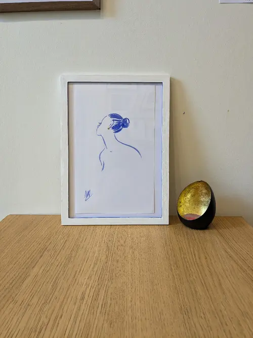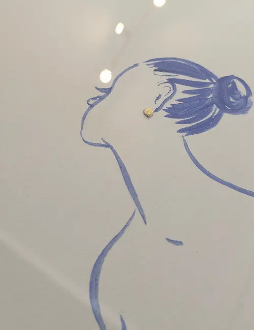 Prussian blue ink and gold leaf, for a reinterpretation of the girl with the pearl earring.