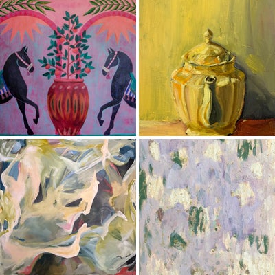 Using a vibrant palette and an amalgamation of watercolour, acrylic, and oil, Moya Rojo incorporates autobiographical, historical, architectural, and religious imagery with a rural sensibility. Initially employing digital techniques, she meticulously crafts dreamlike scenes in her canvases, which blur the boundary between inner and outer space. Her motifs mutate and seamlessly blend with their unspecified surroundings, blurring distinctions between self and other. Moya Rojo’s works soften the artificiality of man-made constructs, merging them with the natural, each element flowing weightlessly. Her compositions evoke old master still lifes with a nod to the surreal, incorporating endemic plants and ritualistic items rich with symbolic significance. Despite their static appearance, Moya Rojo’s paintings radiate life and resonate with an energy transcending earthly realms. Through a continuous metamorphosis, internal and external forces in her paintings render the familiar foreign and the foreign eerily familiar.