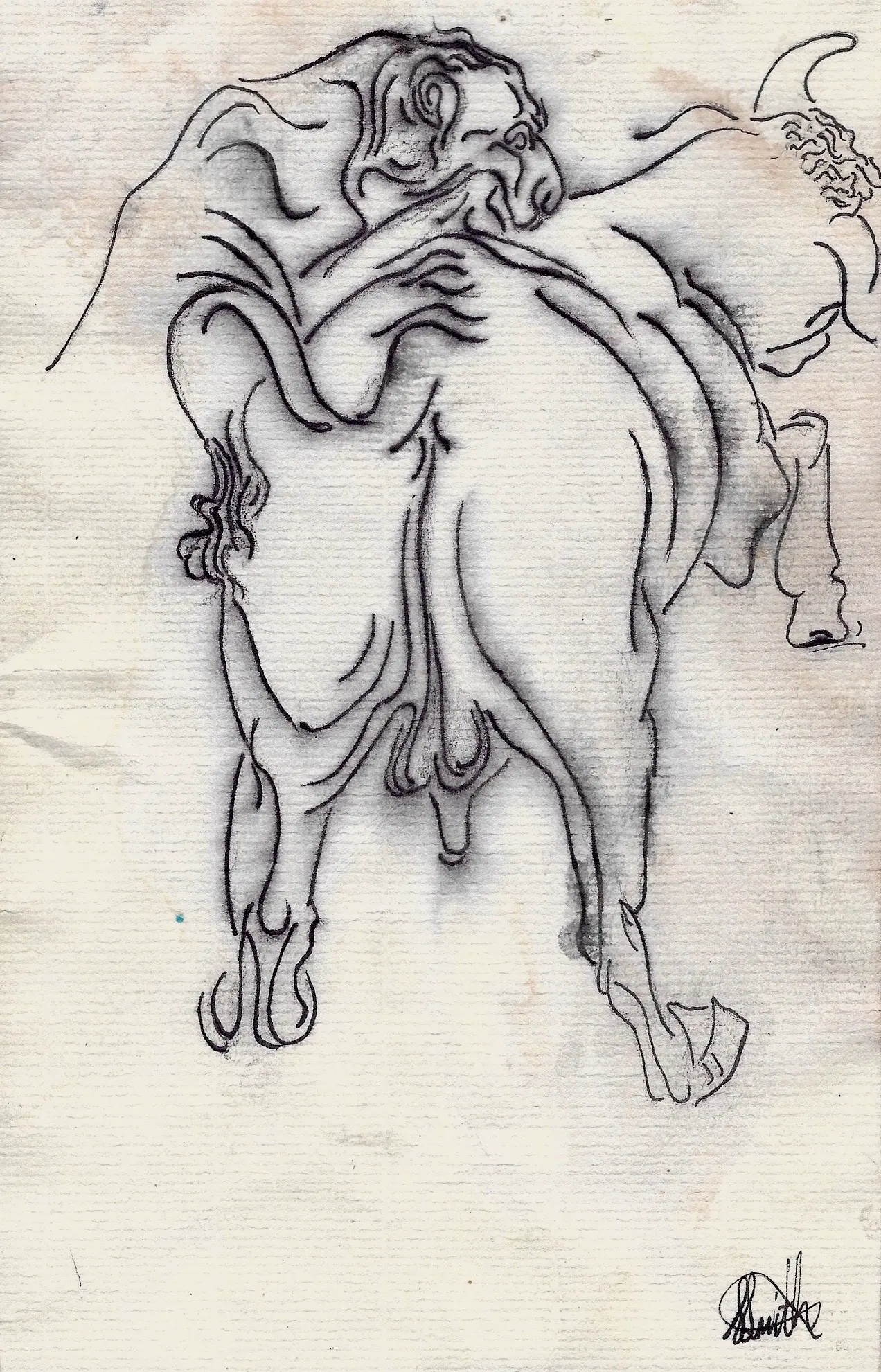 Ink and watercolor on paper [After bronze sculpture, “A Leopard Attacking a Bull” by Giovanfrancesco Susini]