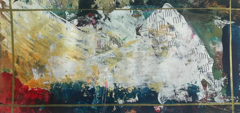 I paint using acrylics and collage elements in an attempt to create pieces that convey energy and motion.