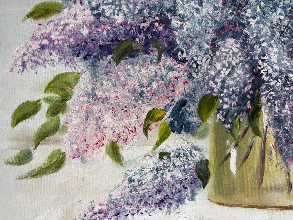 This painting was born from memories of a May garden: the delicate scent of lilac, a light breeze brushing the petals. I wanted to capture not just a bouquet, but a feeling of calm and awakening — like spring whispering hope. Working in oil, I focused on texture: soft gradients from lilac to pink, green leaves as accents of freshness. The goal — to create a piece of eternal spring for someone’s home, where every glance brings a smile. To
