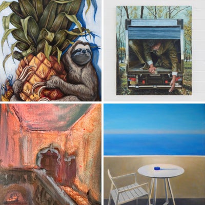 From her animal portraits to her autobiographical work referencing old family slides to her colour infused abstract landscapes… van Gruen is happy to play with multiple subject matters in her art practice. She strives to create a personal relationship between her artwork and her audience, with the ultimate goal of evoking a feeling of intimacy and nostalgia. Using intricate brushwork and an expansive colour palette, she works to express her connections with her subject matter, to tell a story. Alli lives in Whistler, BC with her family and dog Bea. Her work can be found in Whistler and in many private collections in Canada and Europe.