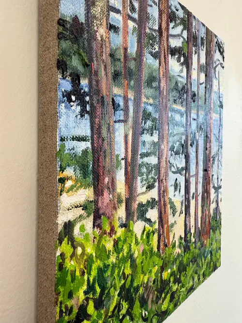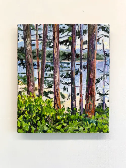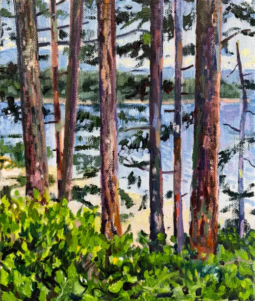 Oil on linen. Painted on site at Hollyhock Centre for Leanring on Cortes Island, BC This is a view that I have returned to for three years, it’s always a great way to revisit this space.