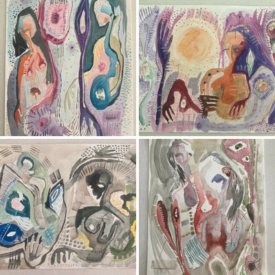Vered Brett is an abstract artist living in Cascais, Portugal. Vered’s art explores the depth, complexity and multiple layers of the stories and memories we carry with us throughout life. Her paintings invite the viewer to dive deep into hidden and unknown moments, peel the layers, and embrace self-acceptance and truth. The proximity to the ocean throughout her life is integral to her work and it is reflected in the choice of tools, textures and colours that she borrows from it. She uses water as a main medium to allow free flow of paint, creating soft borderlines and unpredictable marks. Her intuitive process is free from rules and liberating. Vered hopes to inspire viewers to feel fearless, free and vulnerable through her art.