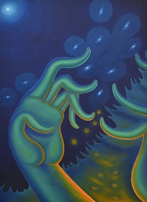 Growing up in a city of more than nine million people with scarce green spaces and little to no wildlife, Ellner has always felt a disconnect from the natural world. Despite these feelings of alienation, his relationship with nature is a focal point of his practice. From his personal experiences of encountering and engaging with nature, Ellner weaves together playful narratives that capture intimate moments of this connection. Through careful abstraction, Ellner can heighten and fully portray the whimsical and awkward interactions he has with the environment around him.