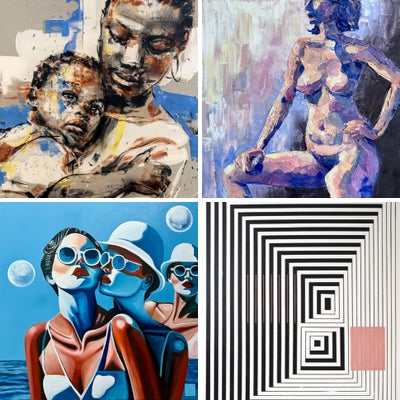 Mario Henrique is a contemporary painter based in Cascais, Portugal. After graduating in Design from Lisbon’s University of Fine Arts, he began his career in online marketing and web development agencies as a creative director, where he led teams in Portugal, Spain, and Brazil. A decade later, he shifted his focus to contemporary painting, which had always been a parallel interest. Mario is a prolific portraitist who is fascinated by the unpredictability of human behaviour, from brief glances to the impermanence of facial expressions. He uses unconventional and rough materials such as cardboard, reversed canvases, and hardware tools, painting abruptly and spontaneously. His approach relies on drippings, splashes, and paint throws, revealing the physicality of the painting process in the final piece. Mario Henrique's paintings are listed in private collections worldwide and he has exhibited both locally and abroad. He's also currently represented by various prestigious international galleries and owns a studio/gallery at the Marina in Cascais, where some of his paintings are publicly displayed.