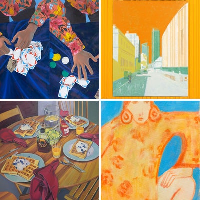 Kay Gasei’s dynamic works combine the mythological with the historical, resulting in rich, ambitious yet ambiguous compositions. Gasei uses his imagination to draw on personal memories of the past, mixing these with historical research to create confident, complex works that collapse time and space. Gasei’s eclectic style blends abstracted, expressive mark making with figuration to play with the notion of narrative, creating fractured tales that maintain an air of obscurity despite feeling somewhat familiar. A cache of recurring characters and motifs inhabit a range of landscapes - both used to explore colour and texture, tapping into the language of painting itself as well as Gasei’s own subconscious. The work has a deep sense of self-reflection, with Gasei using both visual and literary tools to interrogate social systems. Formally, Gasei’s rich, textural areas of slowly built up impasto verge on the sculptural, sitting in contrast to the warm natural tones of the linen. The materiality of these works is ever present, with the ambiguity of the scenes allowing the works to be appreciated on a purely painterly level, stripped of meaning or pretence. Gasei’s hand is fast and blunt, capturing the energy and expression of both his process and characters. Cleverly playing with the three dimensional and the two dimensional, Gasei’s works oscillate between representational and style, often appearing in flux or in progress - hinting at the notion of time and the creative process itself.
