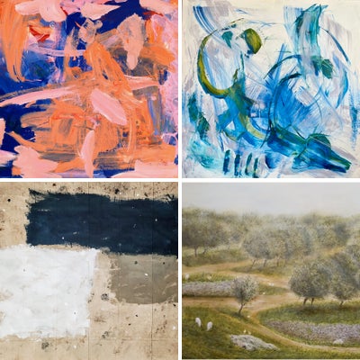 A beautiful Mediterranean landscape inspired by a farm in Malta and painted with a bit more imagination into this rolling olive grove. Actually, a lot was changed and placed around. Typical of the region with soft light, warm colour and delightful greens and summery yellows, it depicts a lot of the natural limestone colour, light browns, whites and earthen colours found all around.
