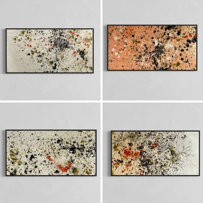 “Moss Blaze,” crafted in 2024, uniquely combines whimsy and boldness on a 48 inches by 36 inches canvas. This singular masterpiece, priced at $4,600 and located in New York, NY, stands as a vibrant testament to the unpredictable beauty of abstract expressionism. The painting captivates with its explosion of red amidst a sea of black, white, and mossy green speckles. The red splashes, fiery and intense, appear almost like flames dancing across a night sky, while the green and black blotches suggest a forested backdrop mysteriously hidden in darkness. This interplay creates a vivid scene of natural elements clashing and coalescing in a dynamic tableau. “Moss Blaze” invites viewers to journey into an abstract wilderness where imagination reigns. The contrasting colors and forms evoke a sense of spontaneity and liberation, pushing the boundaries of traditional art forms to explore the space between the seen and unseen. It is not just a visual delight but a gateway to a fantastical realm, where the natural world meets the vibrancy of the human spirit. The acrylic medium is expertly manipulated to produce textures that add depth and intrigue, encouraging closer inspection. Each element in the painting—from the bold reds to the subtle greens—plays a crucial role in crafting a narrative that is both engaging and thought-provoking. As a unique piece in a modern art collection, “Moss Blaze” is more than an artwork; it is a conversation starter, a piece that challenges the viewer to find order in chaos and beauty in the abstract. Its presence in any space promises to inspire and provoke, making it a valuable addition for collectors seeking pieces that resonate with a bold and whimsical aesthetic.