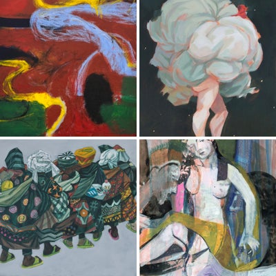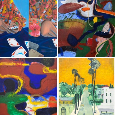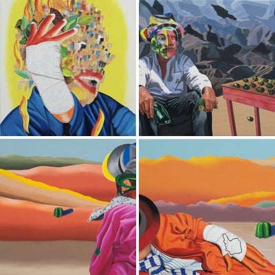 Within the thick foliage of the Amazon, coca leaves (acullico) pour forth from the thousands of shrubs that turn green, ocher, and yellow owing to the light penetrating the canopies. There, in the immensity of the shadows, powerful roots emerge—plants that, when ingested, cause alterations in states of consciousness, transmuting the perception of individuality, of being, and of the environment, reminding us that both the body’s inside and its outside are perceived and imagined at the same time. In this pictorial ensemble, Miguel Ángel Ríos presents a unique vision of himself via self-portraits that explore a fluid and constantly transforming “I,” which with each layer of paint ends up becoming unrecognizable, blurring the distinction between reality and imagination. In this sense, visual elements such as the face, the hat, and the scarf are configured in an amalgam of artistic styles, without any one element losing its own individual style within a composition that seeks to question the conventions of representation in a world governed by social media, and in which identity is characterized by being fixed and immutable. Apart from the light and shadows in Ríos’s visual landscapes, a range of colors is revealed that goes from dark to pastel tones. Fauna is present through lurking postures, operating as reminders, as with the ant that—with a subtle wink—recalls Operación Hormiga (Operation Ant), which is carried out by hand in order to pass coca leaves from one territory to another in southern Latin America, or with the figure of the scorpion that symbolizes a level of the unconscious, full of imagination and uncertainty. \- Mariana Camargo , Curatorial Coordinator Acrylic and oil on canvas