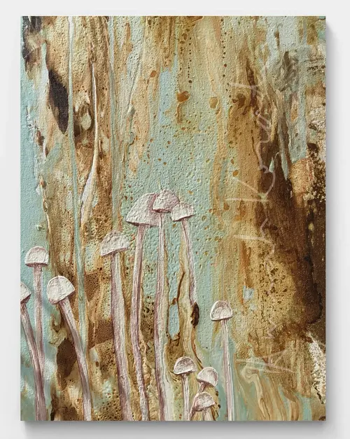 Acrylic on canvas. Between layers of earth and light, this series honors the people shaped by Colombia’s coffee mountains—its flowing rivers, hidden springs, and rain-filled days that hold the memories of a timeless culture. The land breathes silence, spirit, and hope. With each gesture, a conversation emerges between the natural world and the human one