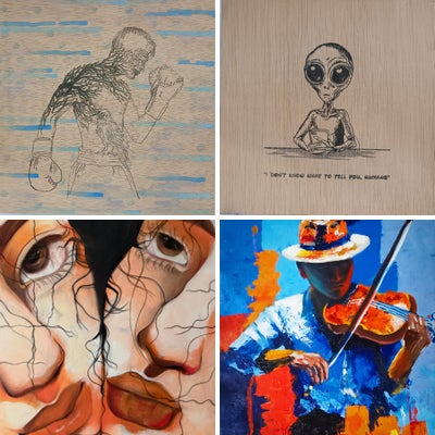 Took two years of art class in high school. Started drawing as soon as I had crayons. I like doing abstract paintings but I also enjoy painting wildlife and landscapes. Hoping to paint more after I retire from the postal service. I’m located in the foothills of the Blue Ridge mountains. I don’t have a physical gallery or studio yet, but maybe one day.