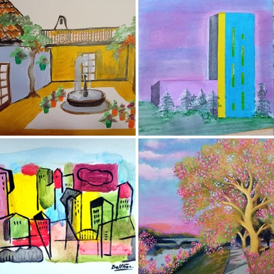 Acrylic painting on thick canson paper.This painting is part of a serie titled " urban landscape ".It's one of a kind and original artwork.Abstract painting.pyb créations.2021