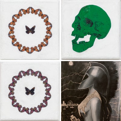 Heavy weight archival paper Paper, ink, specialty paper, gossamer paper, sequined cloth, charcoal, gesso, fixative, metallic paper, mounted on foam board with hanging hook, figurative, collage, portraiture