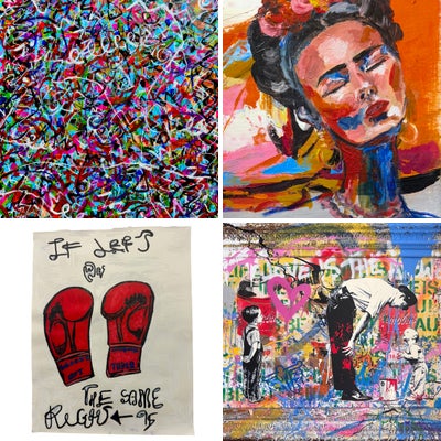 Estimate: $65,000 USD In "Pop Wall," a canvas piece by Mr. Brainwash created in 2021 with overall dimensions of 115x85 cm, the artist celebrates themes of love and hope. The frame, designed by Mr. Brainwash himself, is considered an essential component of the artwork. This artwork showcases his most memorable characters set against a backdrop of radiant, intense colors that highlight the central figures. Distinctive elements include homage to renowned artists' creations such as Keith Haring's figures, and Andy Warhol's soup cans. The piece is also adorned with motivational sayings, prominently featuring Mr. Brainwash's famous quote, "Love is the answer."