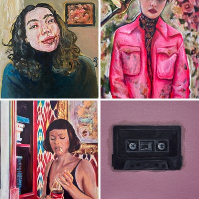 Jay Golding’s figurative paintings and drawings evoke mythology, migration, and interconnectedness, creating literal and symbolic layers employed by vibrant palettes in acrylics and oils, sometimes incorporating collaged or impastoed elements. Golding’s emphasis on tribal cultures within his work, often infuses Caribbean and African cultural motifs allowing him to draw parallels between various communities–expressed by his masked figures and other fictional characters such as the purple-skinned beings from the village “Maji ya bluu”, which is Swahili for blue water. Golding frequently signs his work under the pseudonym Kwame, a name he donned after visiting Ghana in 2019 with his family. He cites his trip to the West African nation as well as Mexico as being life changing and having profound effects on his work.