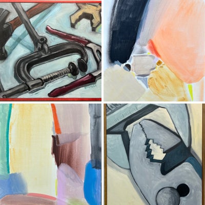 Jay Golding’s figurative paintings and drawings evoke mythology, migration, and interconnectedness, creating literal and symbolic layers employed by vibrant palettes in acrylics and oils, sometimes incorporating collaged or impastoed elements. Golding’s emphasis on tribal cultures within his work, often infuses Caribbean and African cultural motifs allowing him to draw parallels between various communities–expressed by his masked figures and other fictional characters such as the purple-skinned beings from the village “Maji ya bluu”, which is Swahili for blue water. Golding frequently signs his work under the pseudonym Kwame, a name he donned after visiting Ghana in 2019 with his family. He cites his trip to the West African nation as well as Mexico as being life changing and having profound effects on his work.