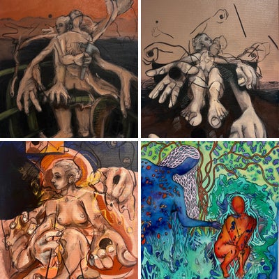 Born in 1989, Gabriela is a self-taught Venezuelan artist. With a background in design and communications, she holds a BBA degree in Strategic Design & Management from Parsons The New School for Design in New York City. In 2014, Gabriela began her career in art, focusing on painting and illustration with the female figure and role as the main subject. She became involved in cultural and creative protests projects in her hometown Maracaibo and was invited to participate in group shows in Aruba, New York and Spain. In 2016, she held her first solo show “Hijos del Petróleo” from which one piece was selected to participate in the UN Trust Fund to End Violence Against Women anual auction. She currently works and resides in Barcelona, Spain, where she obtained a Postgraduate degree in Museum and Cultural Heritage Management at the Universitat de Catalunya in 2019, and a Master’s degree in Digital Arts Curatorship from ESDi, Universitat Ramon Llull, in 2020. Her practice focuses on portrayals of the female figure and role pointing at the commonalities within their stories to evoke a sense of community. She pulls elements from feminist literature, female historical references, and personal experience to construct a symbolic visual language that informs the paintings, each conceived as imaginary scenes in motion of women engaging with each other. The figures come from memory, and the use of the medium reflects the roughness of the honesty she seeks to convey. As an artist, she looks for approachability and expression with the goal of paying homage to women.