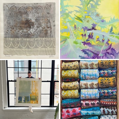 Created from printmaking experiments, this piece is made from several layers of acrylic paint monotypes with collaged vintage lace on rag paper. This series of works is my response to climate grief, mixing memories with natural forms to create images of longing.