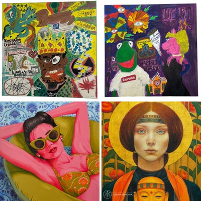 “Shanti”, this painting shows a young woman holding a Buddha head in a serene attitude, representing peace, calm and harmony both internally and externally. The vertical composition and the golden halo surrounding the young woman’s head add an idea of transcendence and connects her with Shanti or divine peace. “Shanti” in Sanskrit means “peace”, both in the sense of inner tranquility and external harmony. It is a key term in Eastern spiritual philosophies such as Hinduism and Buddhism, where inner peace is a desired state that arises from meditation, balance and a deep understanding of life. This work combines elements of different artistic styles and spiritual traditions. There is a explicit homage to classical Renaissance aesthetics, but also a fusion with Eastern spiritual symbology such as Byzantine painting or Japanese Rinpa. The artwork has a timeless and mystical character, being at the same time decorative and profound in its symbolism.