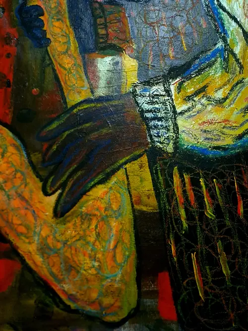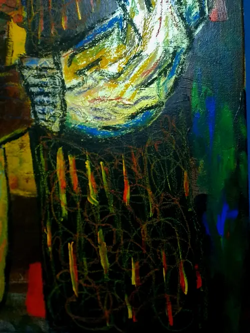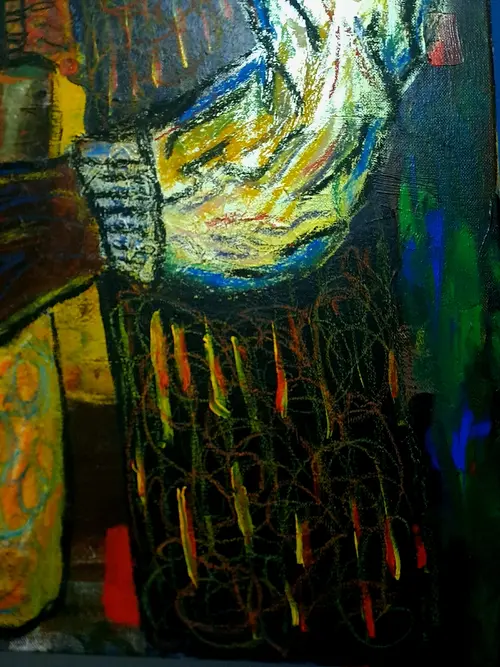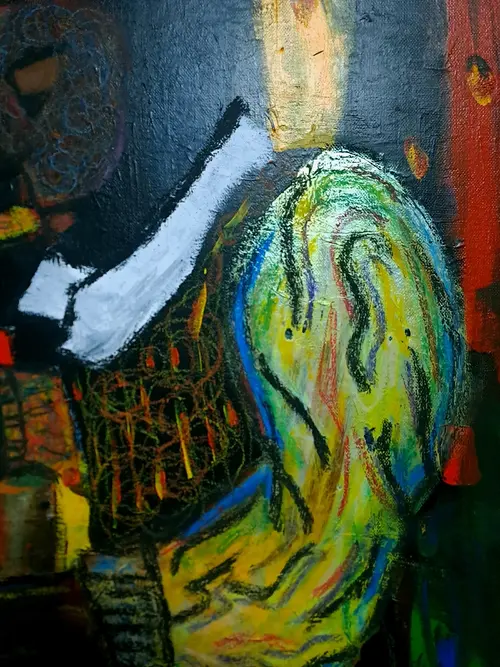 My name is Ali. I’m 20 years old, and I’ve been creating art since I was around 14. I started out sketching with pencils on paper and kept at it for a few years before taking a break. At 18, I began painting seriously and started exploring different styles and ideas. I work mainly with acrylic paint and oil pastels. I like experimenting with both because they let me create strong colors, bold textures, and unique details in every piece. My work stands out for its originality and the unusual ways I combine shapes, colors, and layers. I want my art to catch people’s attention and make them stop to really look at it. I started working on smaller canvases, around 60–80cm, but I’ve been moving into larger pieces to challenge myself and bring more presence to my work. I’m focused on continuing to grow as an artist and eventually creating large-scale paintings that represent my progress and vision.