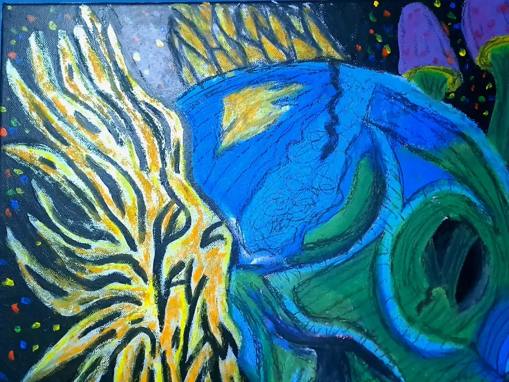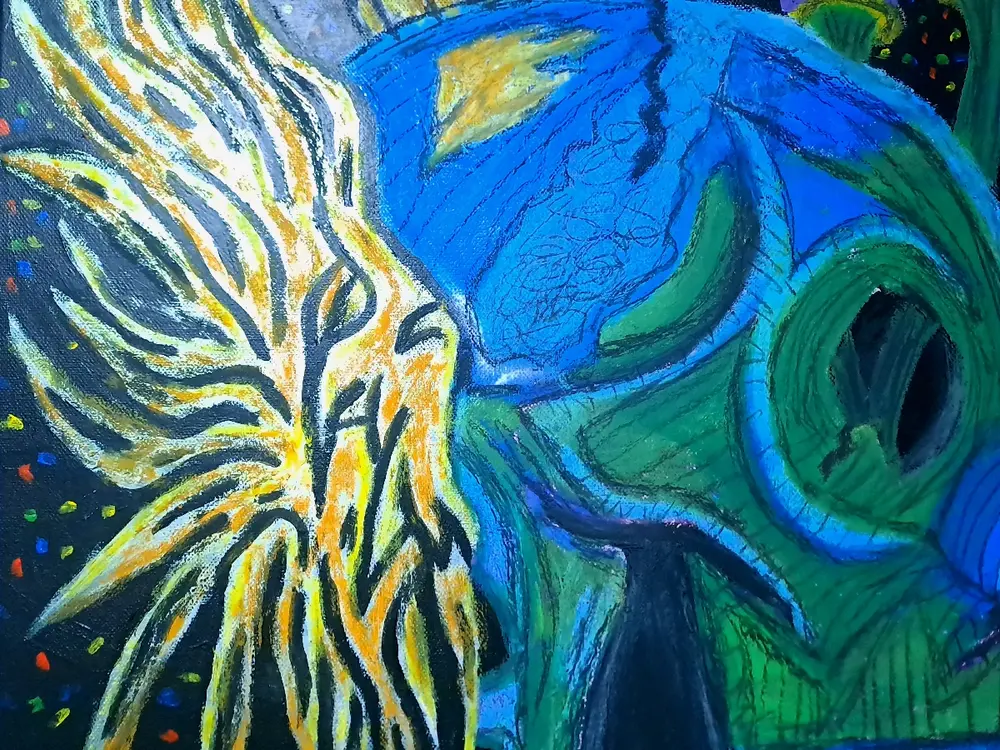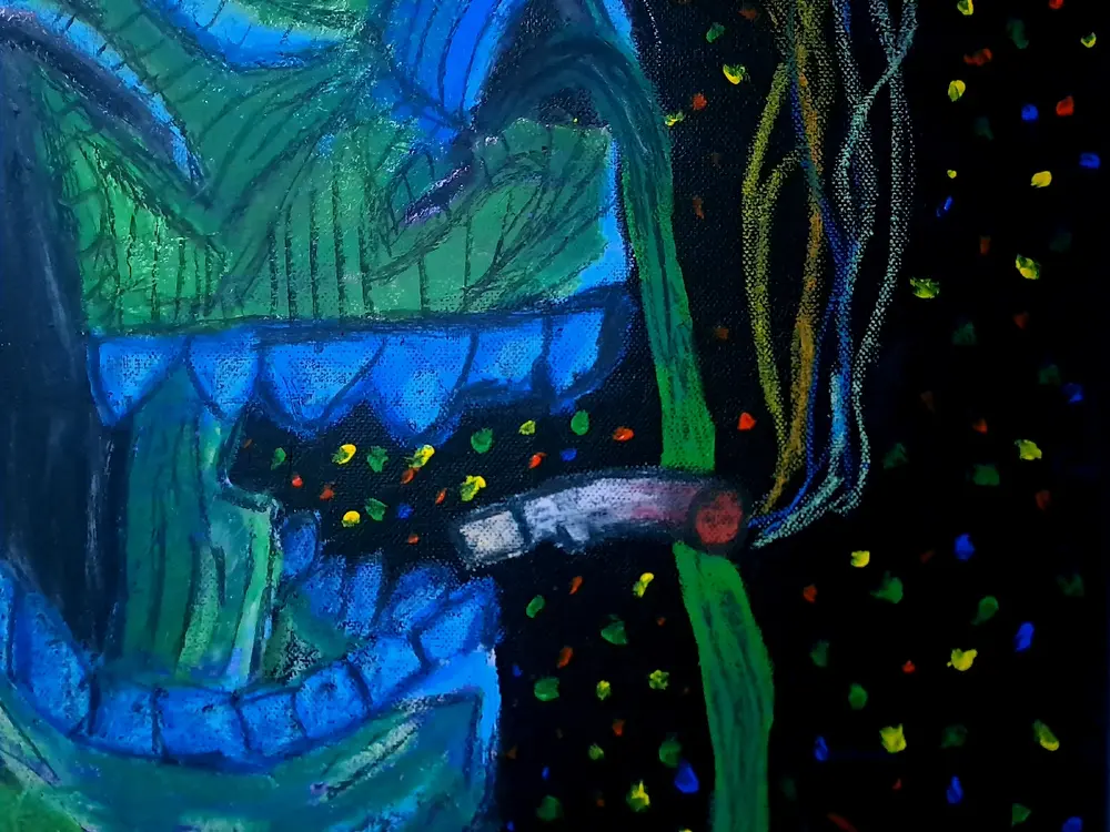 My name is Ali. I’m 20 years old, and I’ve been creating art since I was around 14. I started out sketching with pencils on paper and kept at it for a few years before taking a break. At 18, I began painting seriously and started exploring different styles and ideas. I work mainly with acrylic paint and oil pastels. I like experimenting with both because they let me create strong colors, bold textures, and unique details in every piece. My work stands out for its originality and the unusual ways I combine shapes, colors, and layers. I want my art to catch people’s attention and make them stop to really look at it. I started working on smaller canvases, around 60–80cm, but I’ve been moving into larger pieces to challenge myself and bring more presence to my work. I’m focused on continuing to grow as an artist and eventually creating large-scale paintings that represent my progress and vision.