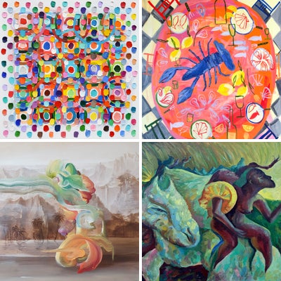 Acrylic and oil stick on canvas.