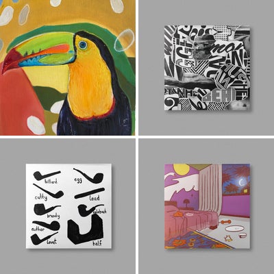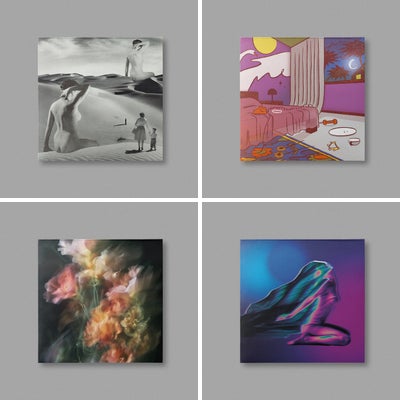 Jay Golding’s figurative paintings and drawings evoke mythology, migration, and interconnectedness, creating literal and symbolic layers employed by vibrant palettes in acrylics and oils, sometimes incorporating collaged or impastoed elements. Golding’s emphasis on tribal cultures within his work, often infuses Caribbean and African cultural motifs allowing him to draw parallels between various communities–expressed by his masked figures and other fictional characters such as the purple-skinned beings from the village “Maji ya bluu”, which is Swahili for blue water. Golding frequently signs his work under the pseudonym Kwame, a name he donned after visiting Ghana in 2019 with his family. He cites his trip to the West African nation as well as Mexico as being life changing and having profound effects on his work.